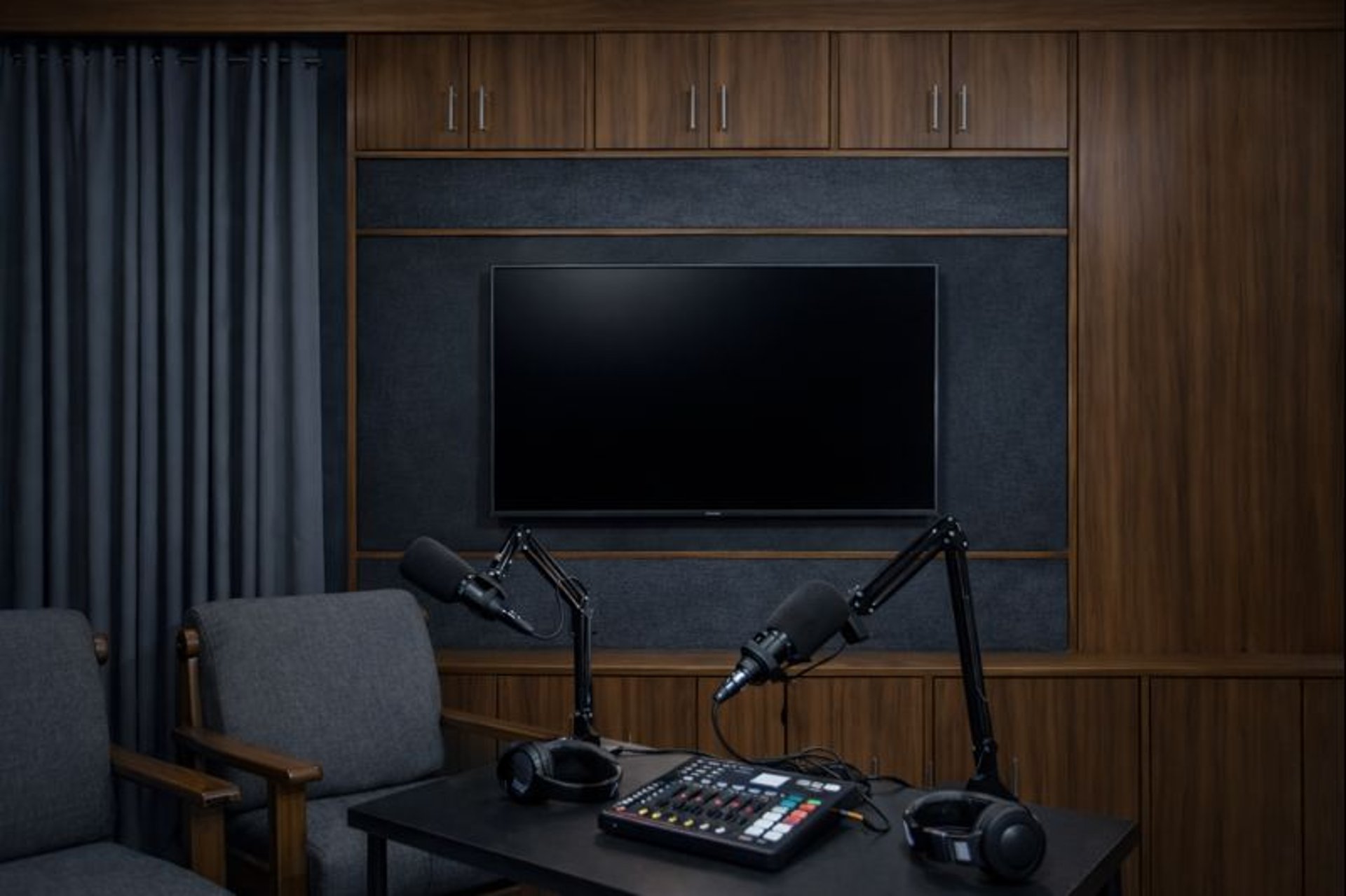 Broadcast Acoustics: Treated for crystal-clear audio.