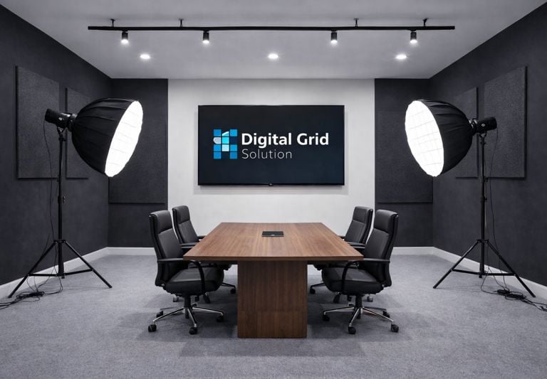 We don't just install lights and mics. We design your visual composition and acoustic environment using cinematic principles to ensure you look and sound authoritative from every angle.